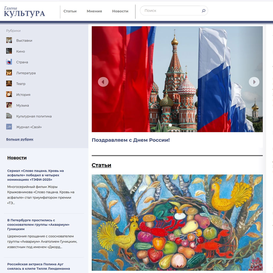 Мы подготовили сборник сетевых ресурсов, позволяющих познакомиться с многообразием культуры России - литературой, музыкой, живописью, театральными постановками, кинофильмами, музейными коллекциями и др.
